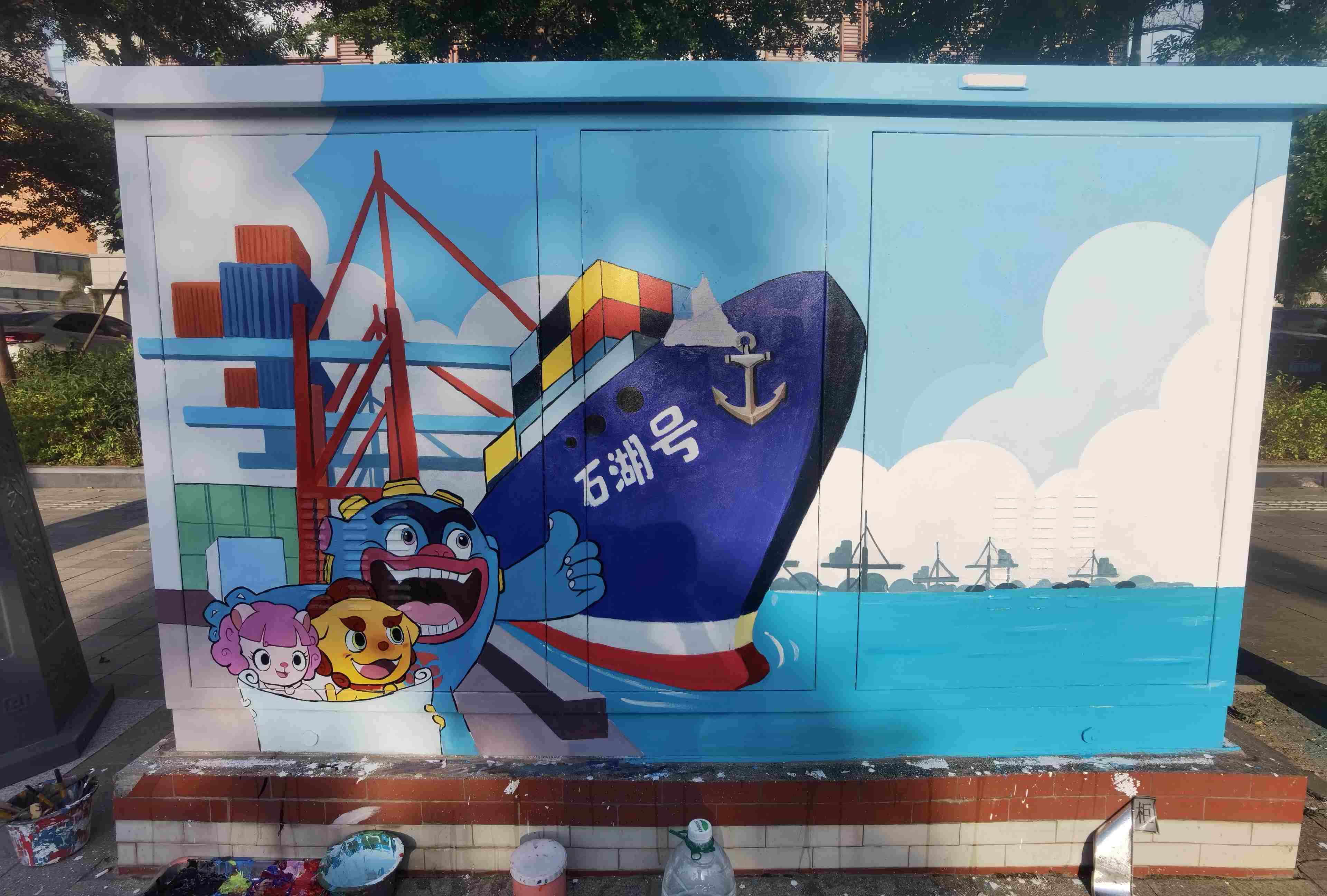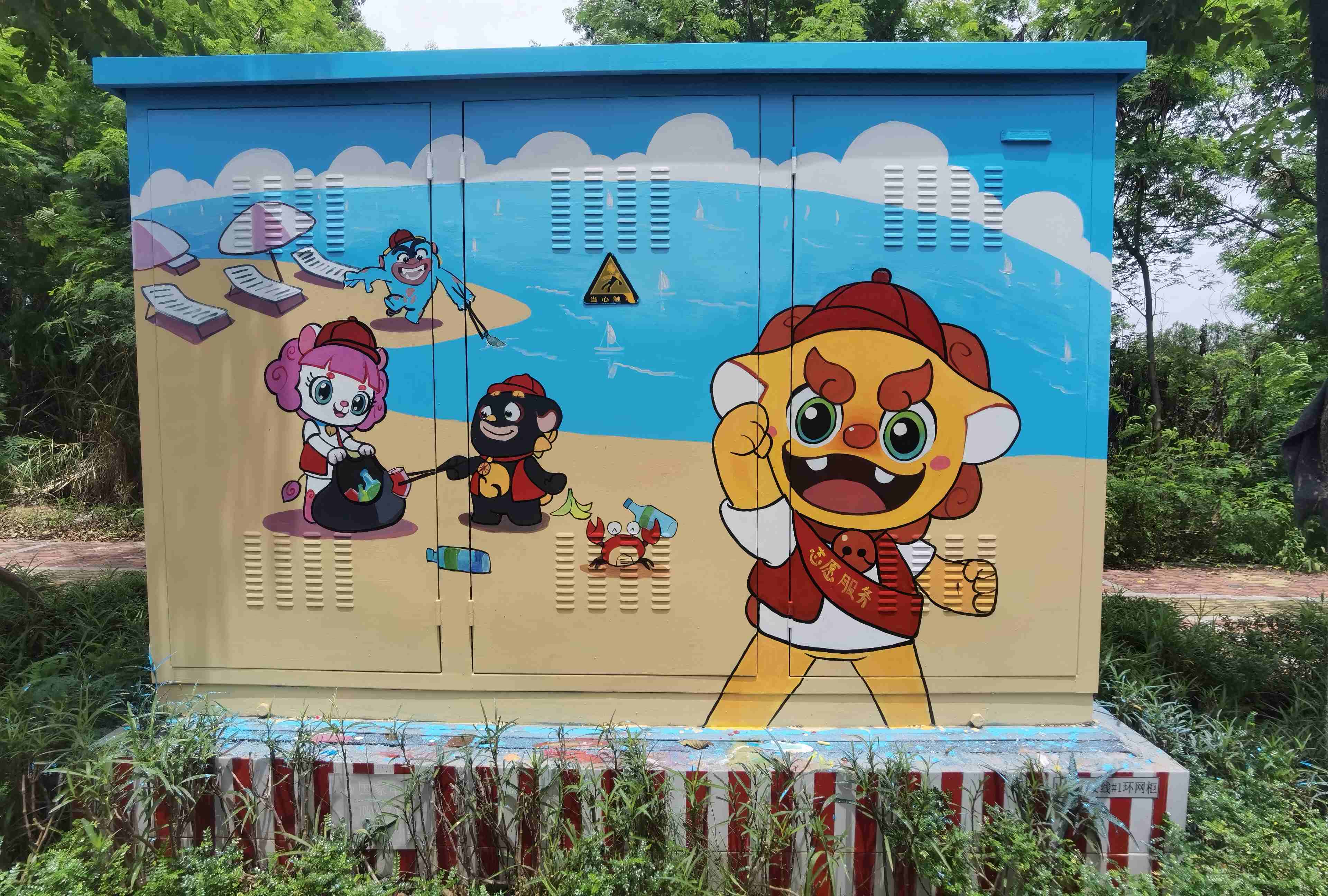 配电箱变身艺术小天地,一侧传递无偿献血的大爱,一侧描绘海滨的欢乐模样,为街景添彩,让公益与艺术同频~